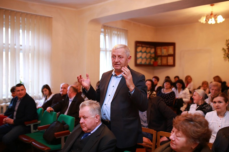 В свою чергу, Володимир Григорович проаналізував діяльність закладів охорони здоров’я області у 2018 році. Очільник медицини Тернопільщини ознайомив присутніх із фінансовими аспектами, рівнем комп’ютеризації закладів медицини, покращенням їх матеріально-технічної бази, програмою «Доступні ліки» та системою госпітальних округів. Також, в своєму виступі начальник управління охорони здоров’я облдержадміністрації зачепив такі теми як безкоштовна діагностика, комунікація з приватними закладами охорони здоров’я та окреслив плани на 2019 рік: завершення реформування первинної ланки, проведення реформи вторинної і третинної допомоги, комп’ютеризація закладів медицини, перетворення їх в КНП, впровадження новітніх технологій.